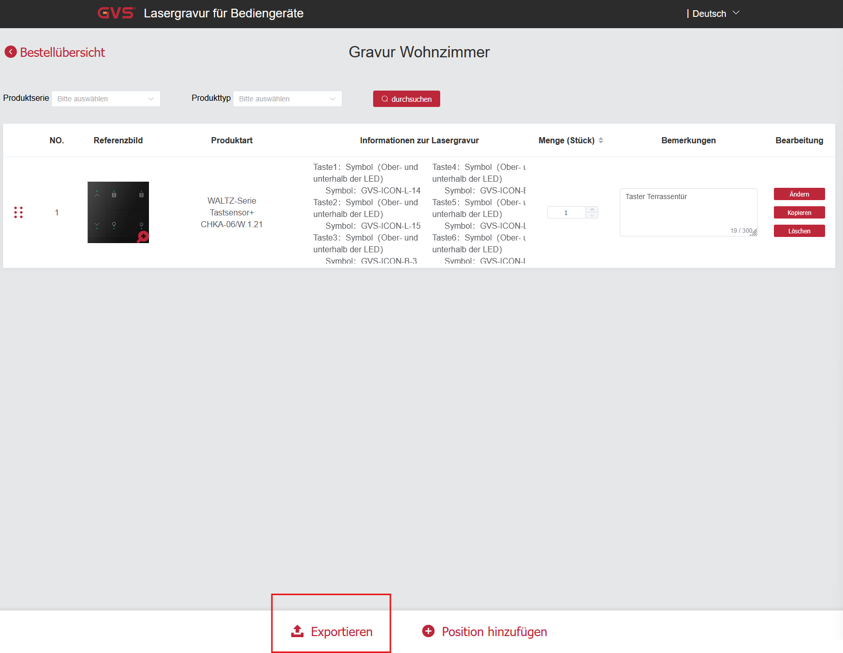 Ab sofort können deine GVS-Bediengeräte vom Hersteller graviert und über Voltus bestellt werden. Dafür stellt GVS ein Konfigurationstool zur Verfügung, welches die Möglichkeiten der Individualisierung schafft.
